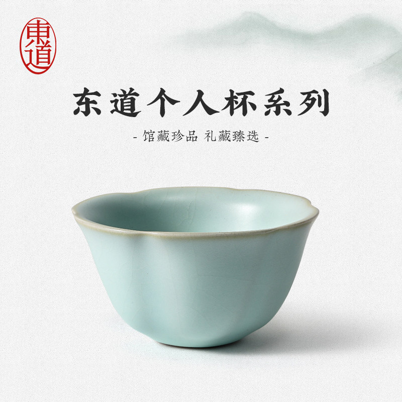 东道汝窑茶杯品茗杯主人杯家用功夫茶具单杯汝瓷茶盏单个人中葵杯