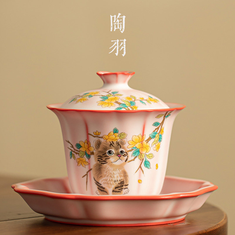 粉色汝窑草莓兔手抓壶单个高档大号不烫手家用茶碗带盖功夫茶具