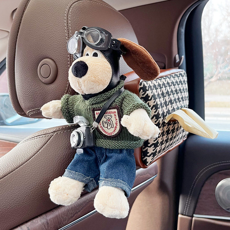 车载纸巾盒车用抽纸盒高级感挂式扶手箱公仔玩偶创意汽车内装饰品