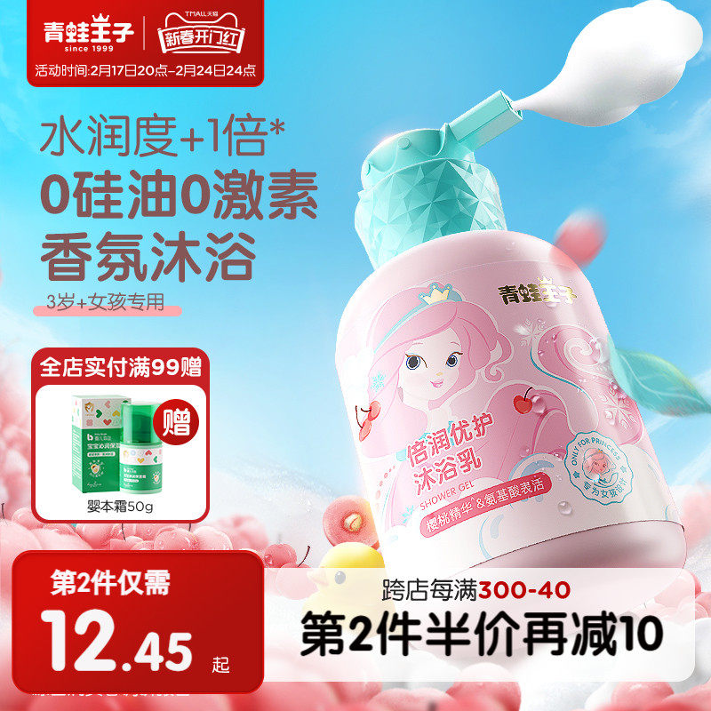 润本桃叶精华泡泡沐浴露洗发水二合一宝宝儿童专用洗护婴儿沐浴乳