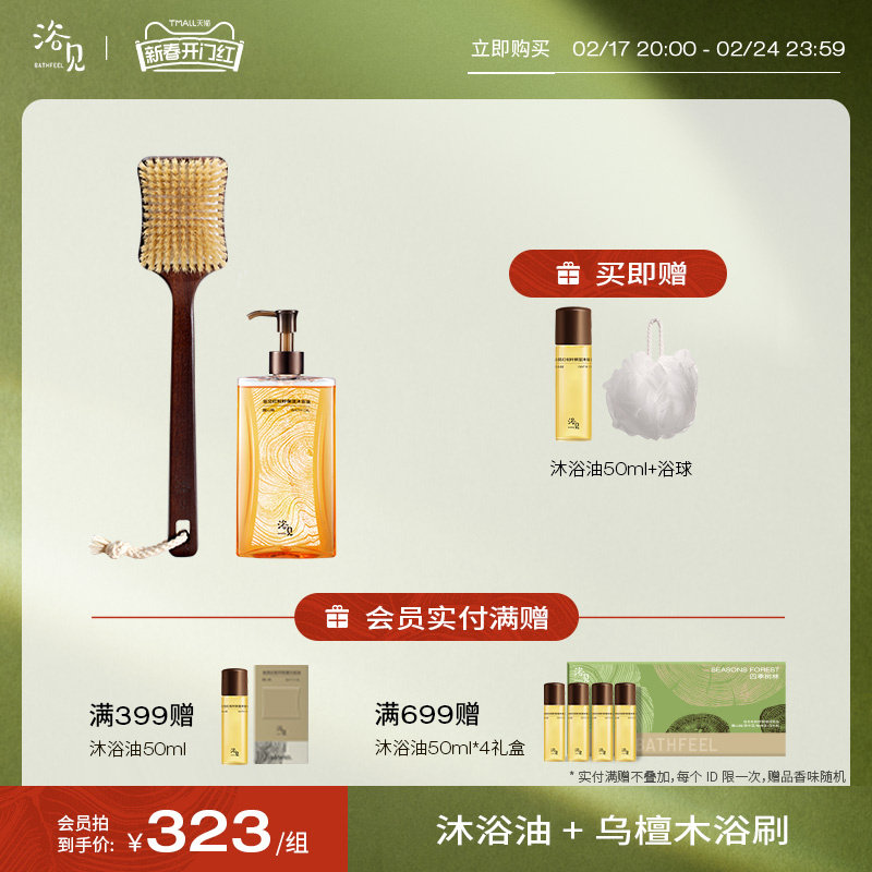 浴见红松籽保湿香氛沐浴油清洁沐浴乳+乌檀木浴刷洗澡刷沐浴刷