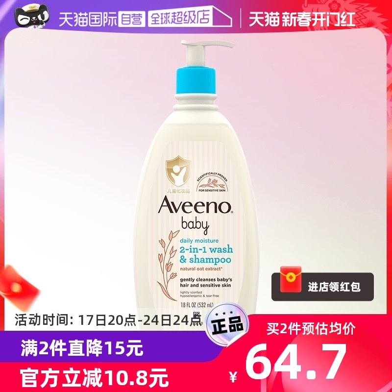【自营】Aveeno艾维诺婴儿童沐浴露洗发水二合一宝宝沐浴乳532ml