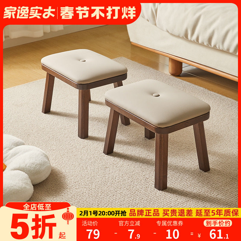 家逸实木小凳子家用小板凳客厅茶几木凳沙发凳垫脚凳圆软包矮凳
