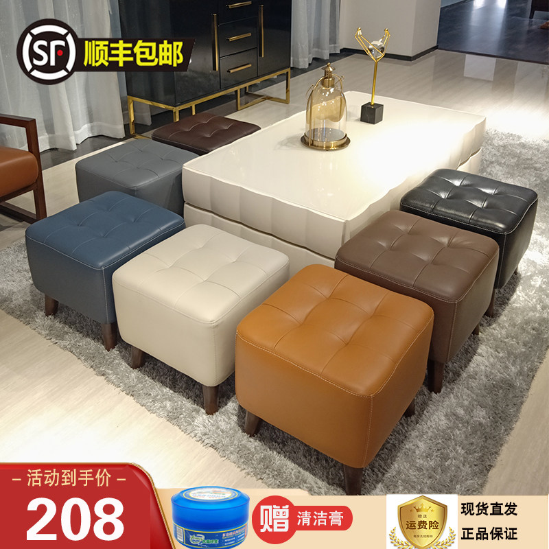 罗伊头层牛皮沙发凳家用换鞋凳客厅实木小真皮墩凳子搁脚化妆矮凳