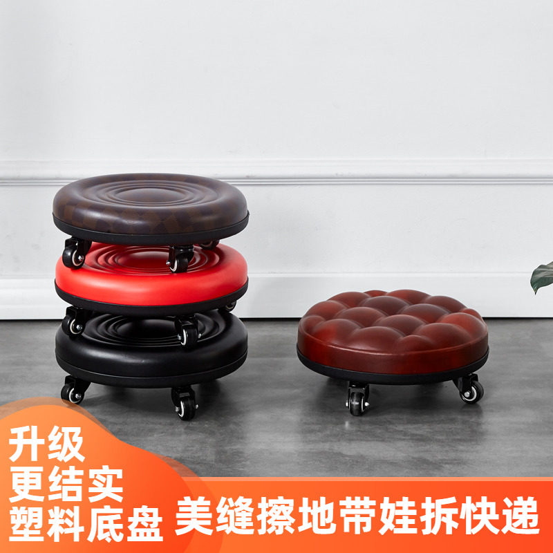 带轮小凳子家用滑轮矮凳美缝擦地小板凳沙发凳简约创意学步圆凳登
