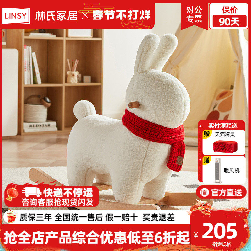 林氏家居网红客厅动物坐骑沙发小马摆件坐凳实木框儿童摇椅LH097