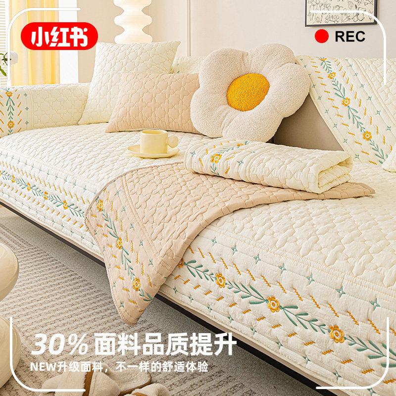 2023新款轻奢风沙发垫纯棉四季通用防滑坐垫三座一贵妃套罩巾盖布
