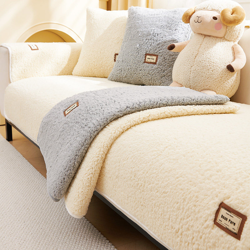 2024新款奶油风羊羔绒沙发垫子秋冬季加厚毛绒沙发套罩靠背盖布巾