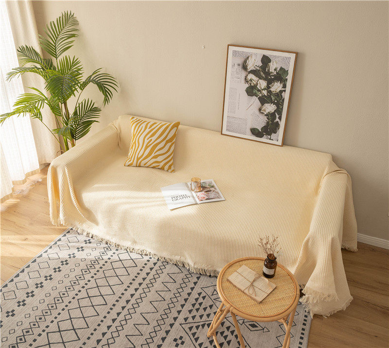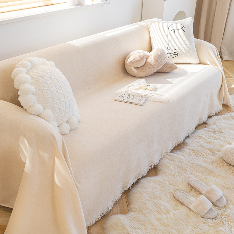 奶油风纯色沙发套罩遮丑网红沙发布盖布全盖民宿床尾巾高级沙发毯