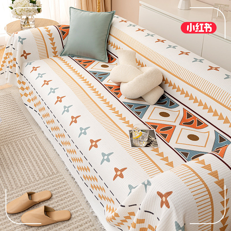 复古棉线毯防滑沙发罩通用ins沙发盖布通用民族风单人全盖沙发巾