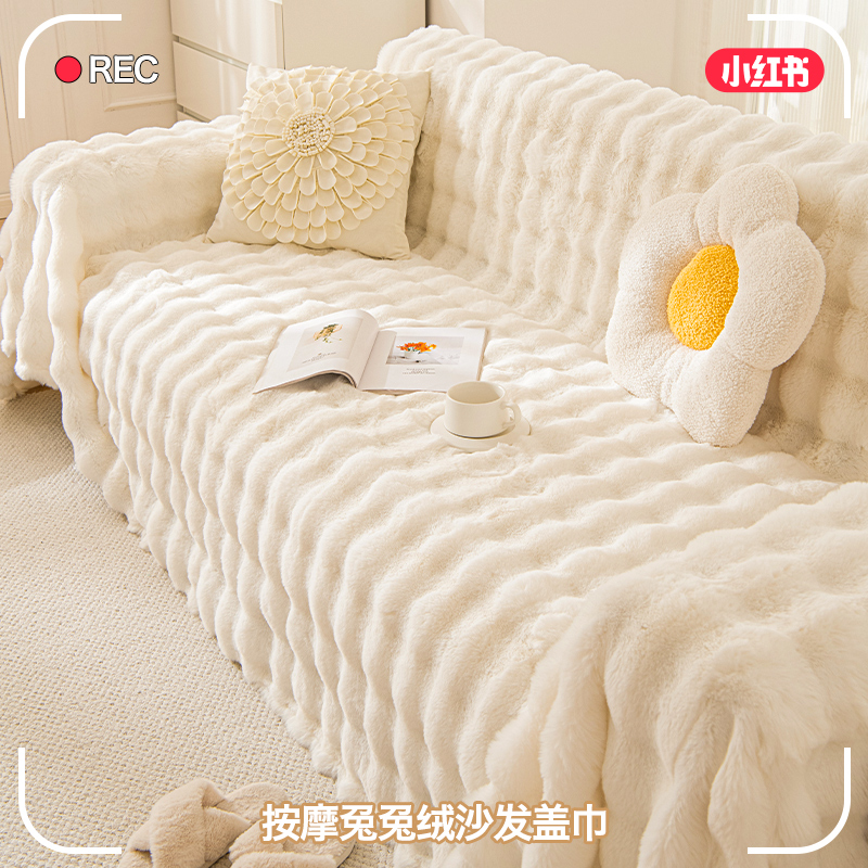 兔兔绒网红沙发垫冬季加厚毛绒坐垫防滑皮沙发套罩2024新款盖布巾