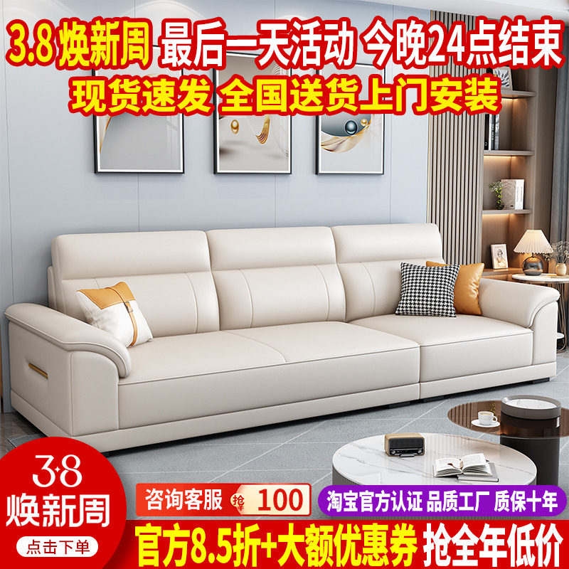 客厅免洗科技布沙发小户型轻奢双人位三人位出租房皮沙发现代简约
