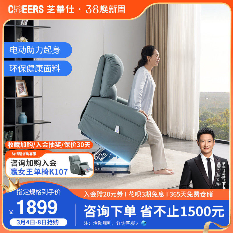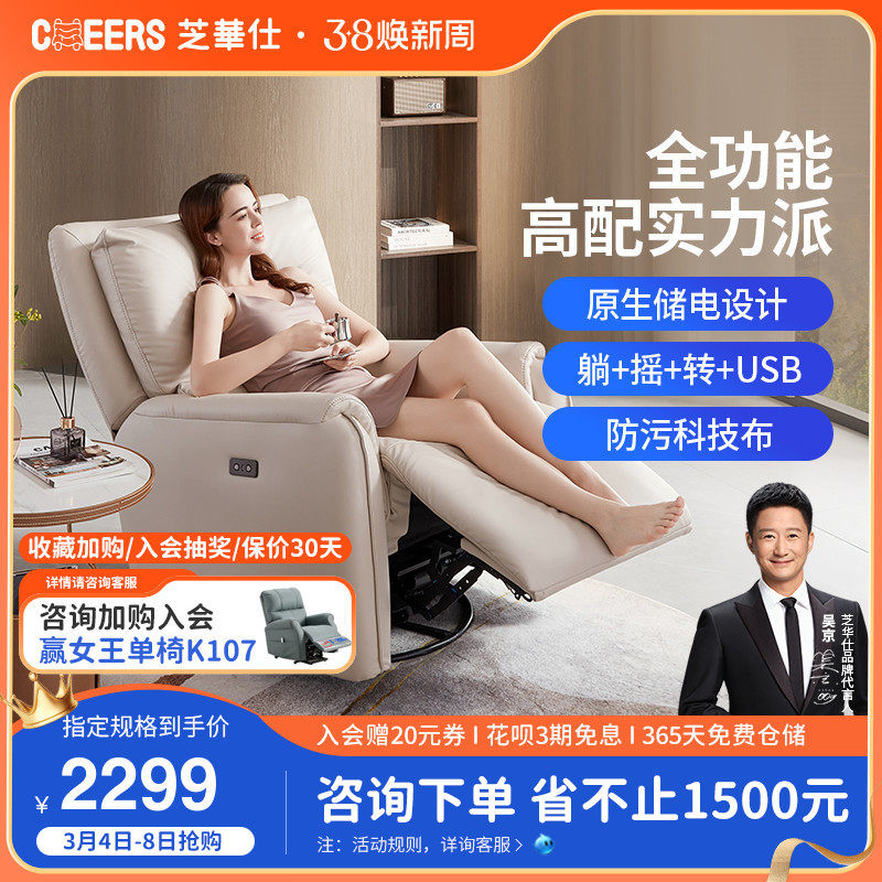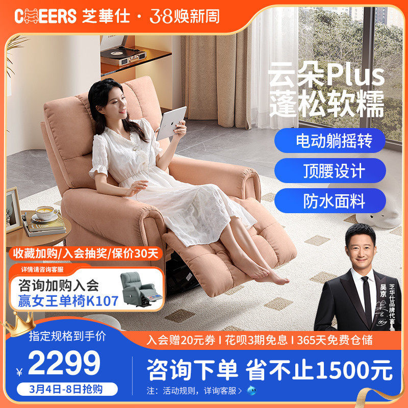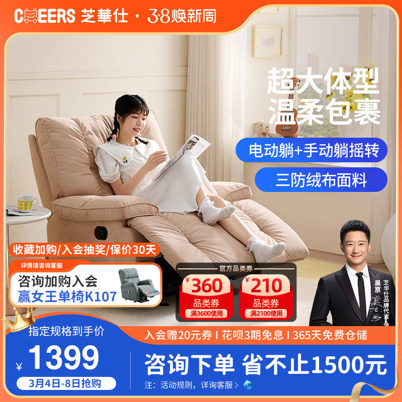 芝华仕头等舱布艺单人沙发客厅奶油风电动可躺云朵懒人单椅30068