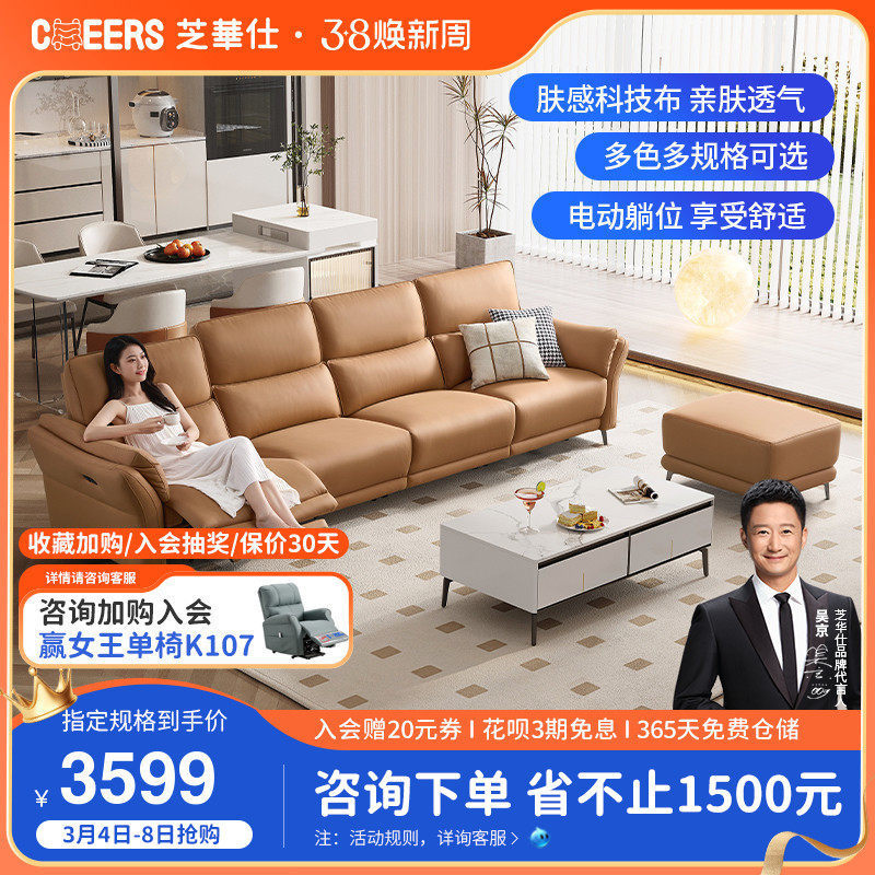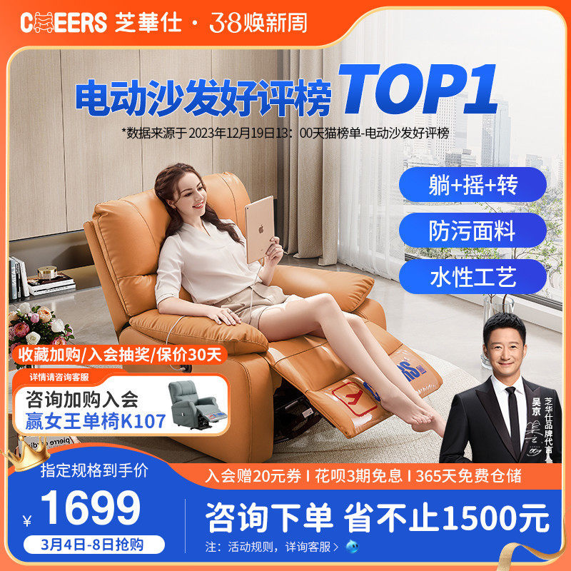 芝华仕头等舱纳帕生态云皮沙发现代客厅电动多功能布艺单椅70381