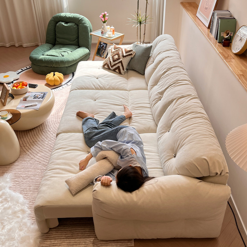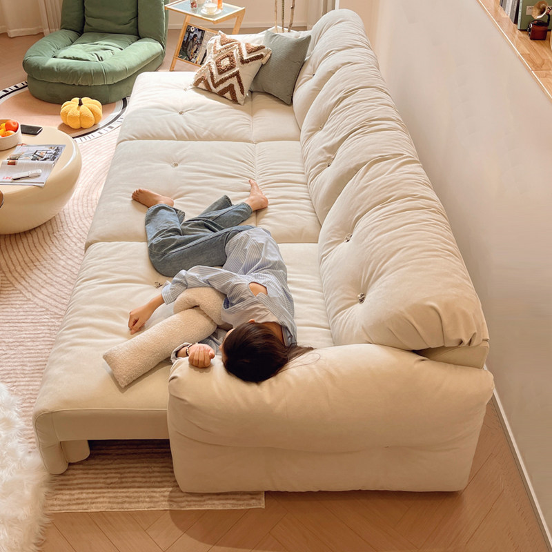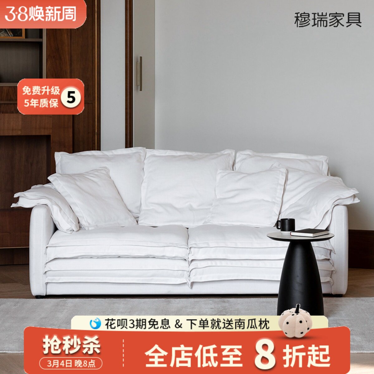泡芙棉花糖布艺沙发法式奶油风格北欧客厅简约现代云朵钢琴键沙发