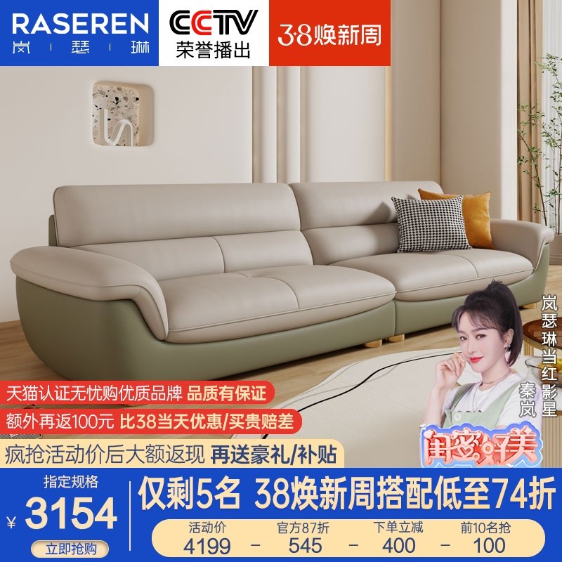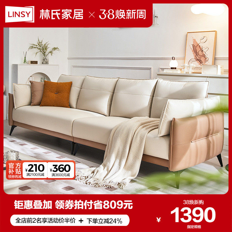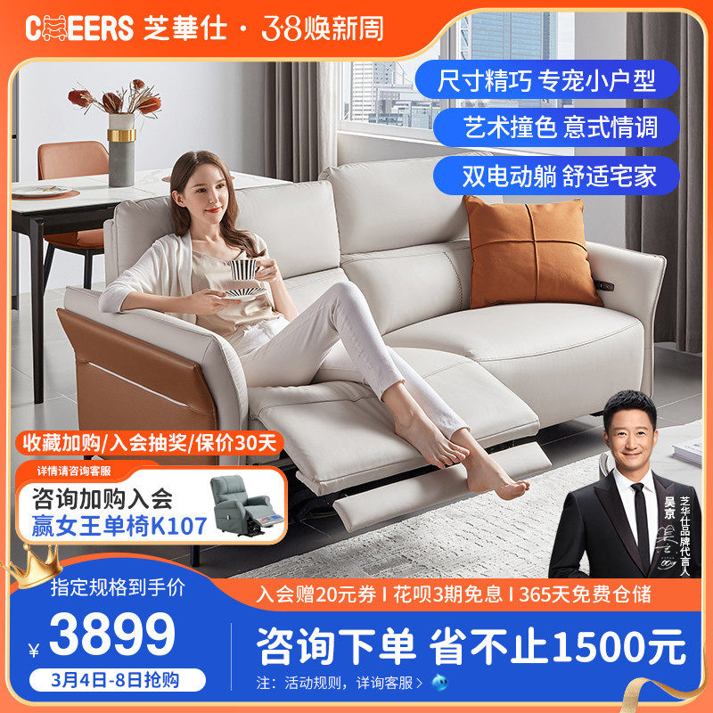 芝华仕头等舱现代轻奢真皮沙发电动功能奶油风简约客厅直排50891
