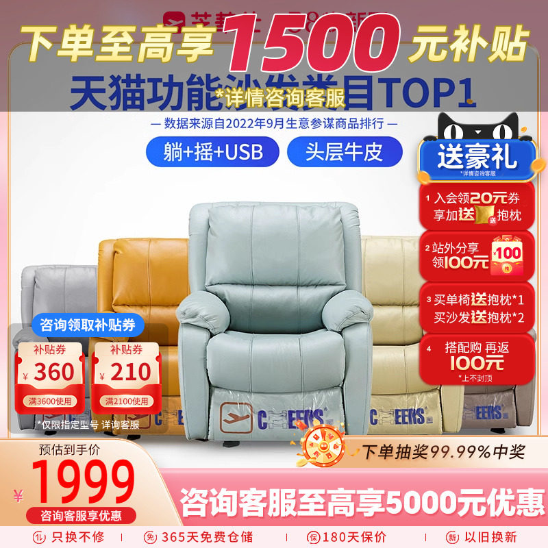 芝华仕头等舱真皮功能沙发可转摇摇椅客厅现代简约大象耳朵30232