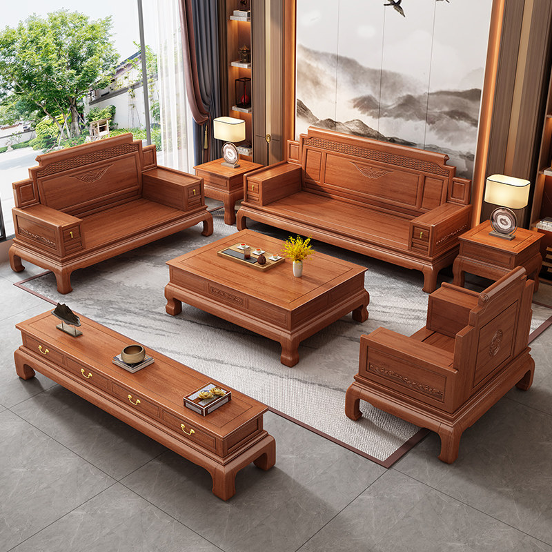 新中式金花梨木冬夏两用实木沙发组合客厅大户型菠萝格仿红木家具