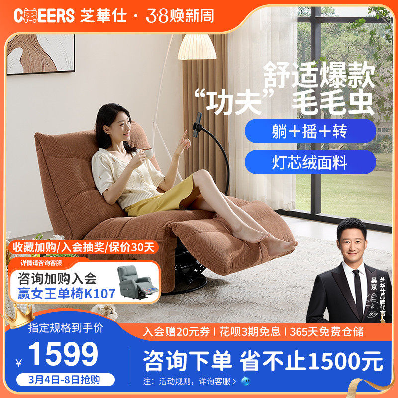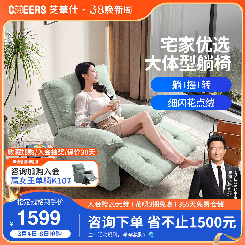 芝华仕头等舱布艺单人沙发客厅加宽手动可躺云朵懒人摇摇椅30051
