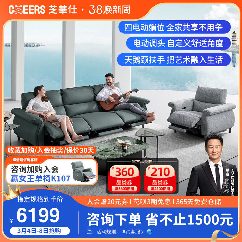 芝华仕头等舱现代简约真皮电动功能沙发皮艺头层牛皮客厅11323