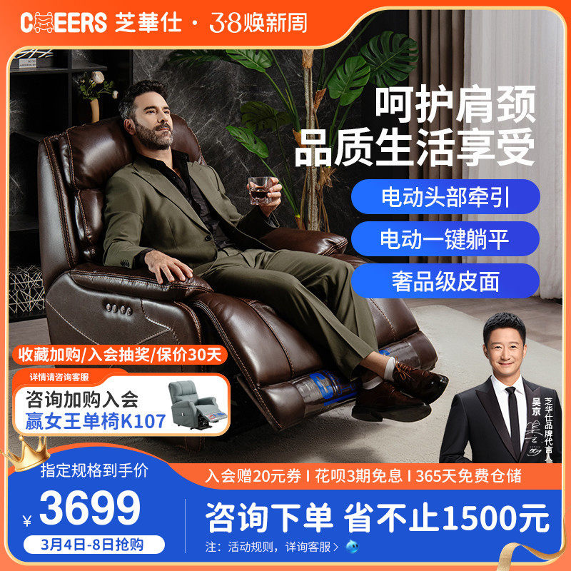 芝华仕头等舱沙发真皮头层牛皮休闲单人电动功能单椅芝华士K621