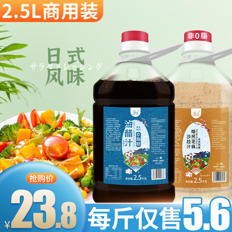 0脂肪油醋汁大桶沙拉酱商用低减零脂肥卡沙拉汁大瓶轻食低脂酱料