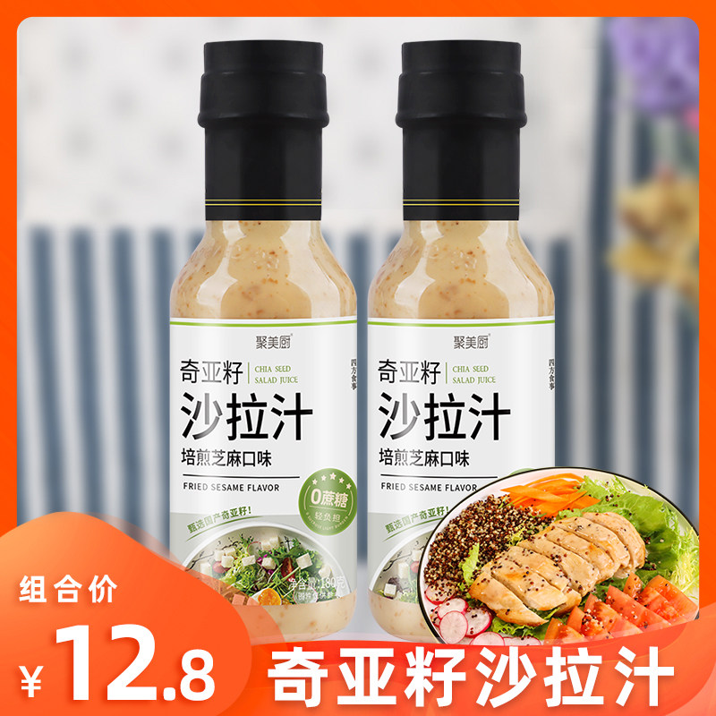 奇亚籽沙拉汁低零0无糖精脂肪卡沙拉酱蔬菜大拌汁拌菜调料油醋汁