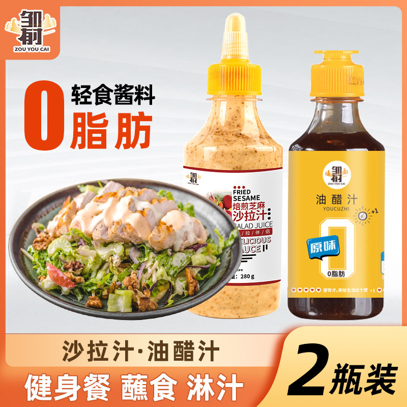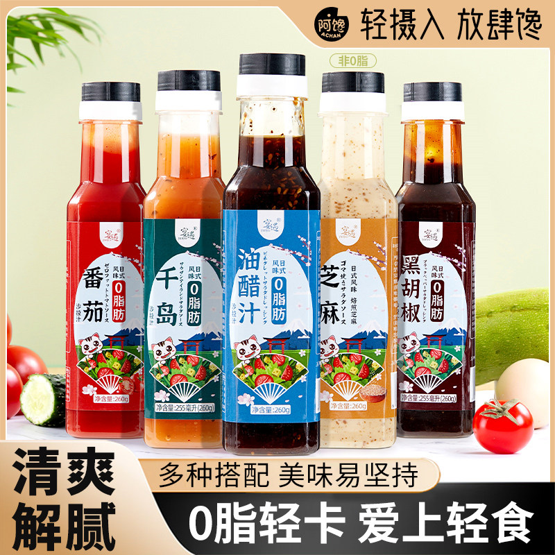 轻食沙拉酱0脂肪油醋汁减低酱料芝麻沙拉蔬菜汁调味千岛酱脂家用
