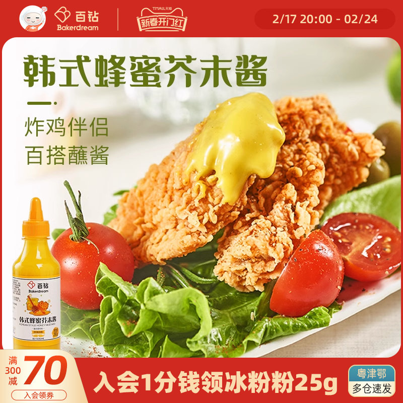 百钻韩式蜂蜜芥末酱 炸鸡薯条汉堡蘸酱沙拉介末酱料挤压瓶装280g