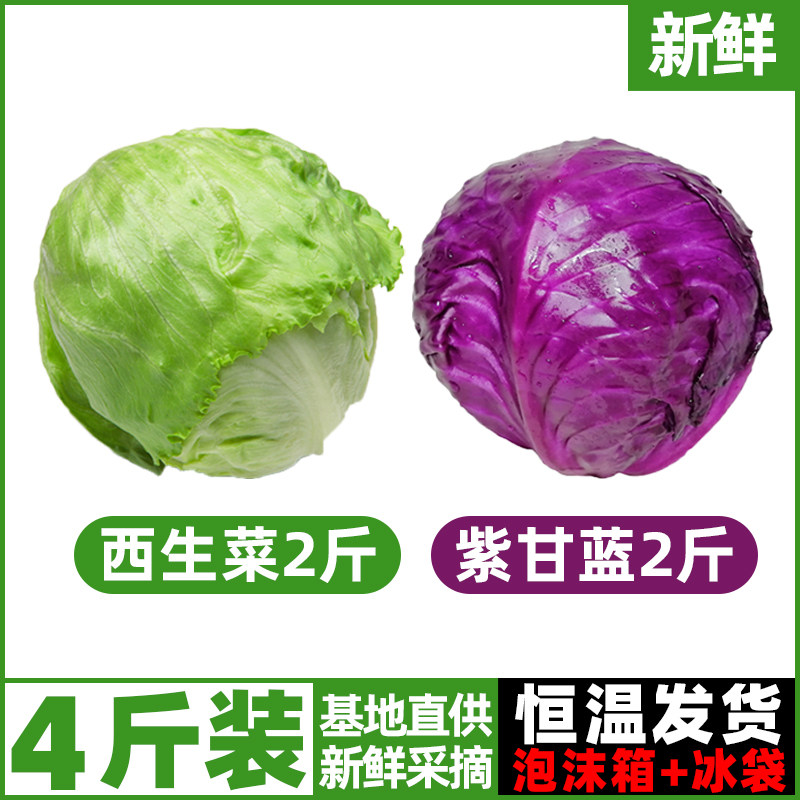 西生菜紫甘蓝4斤装新鲜沙拉蔬菜色拉食材圆生菜球汉专用沙拉蔬菜