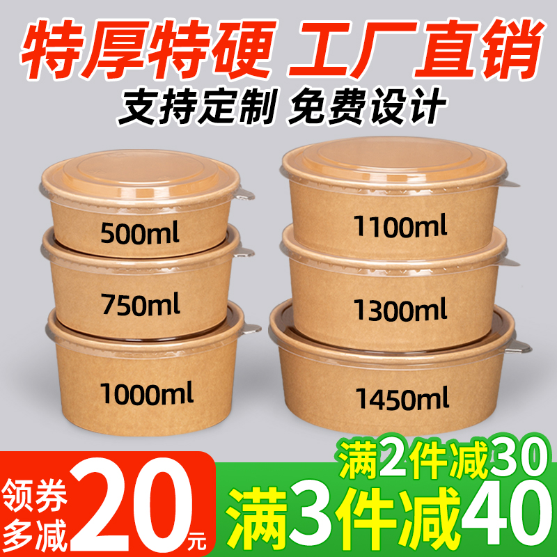 一次性牛皮纸碗打包盒圆形沙拉碗外卖餐盒卤肉饭带盖加厚纸质饭盒