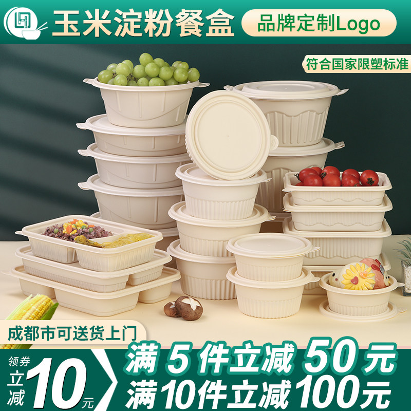 一次性玉米淀粉餐盒环保可降解圆形外卖打包盒饭盒水果沙拉盒汤碗