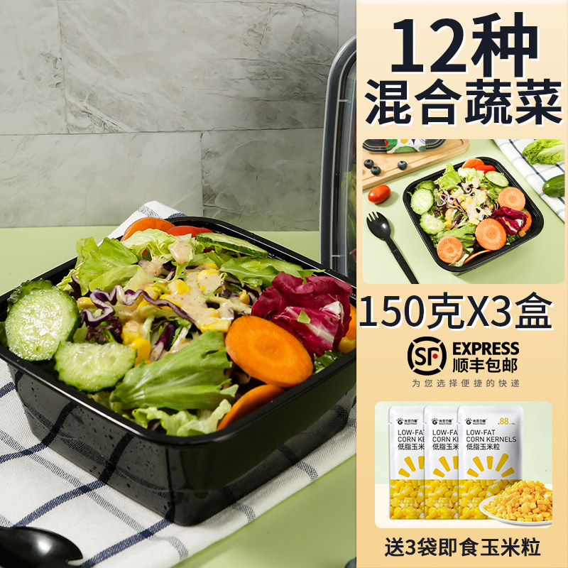 蔬菜沙拉套餐150g*3盒装 新鲜混合生菜轻食健身餐送3袋即食玉米粒