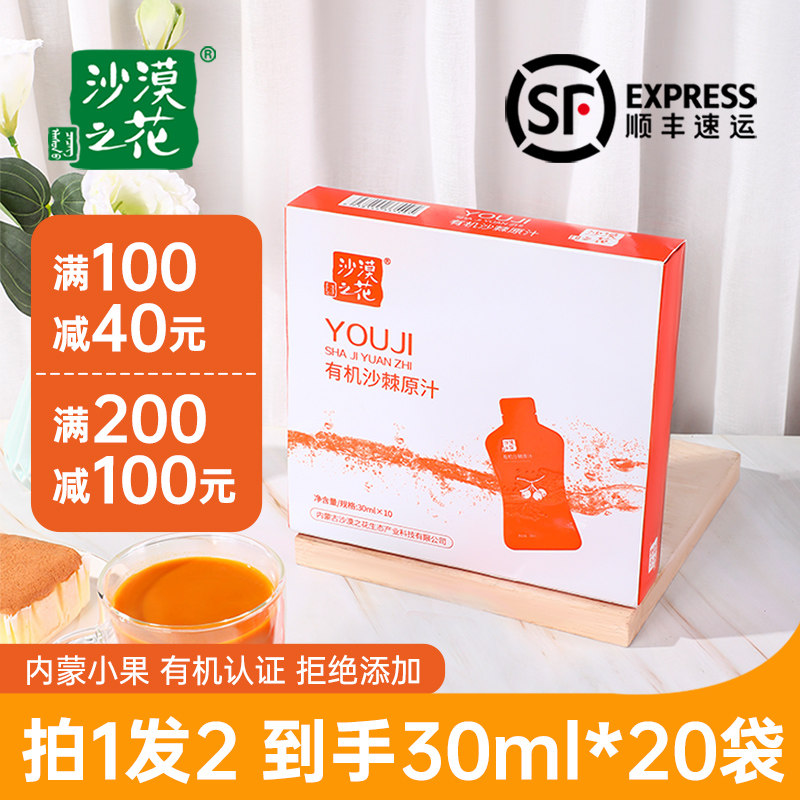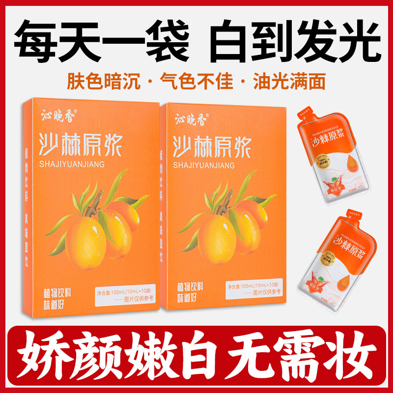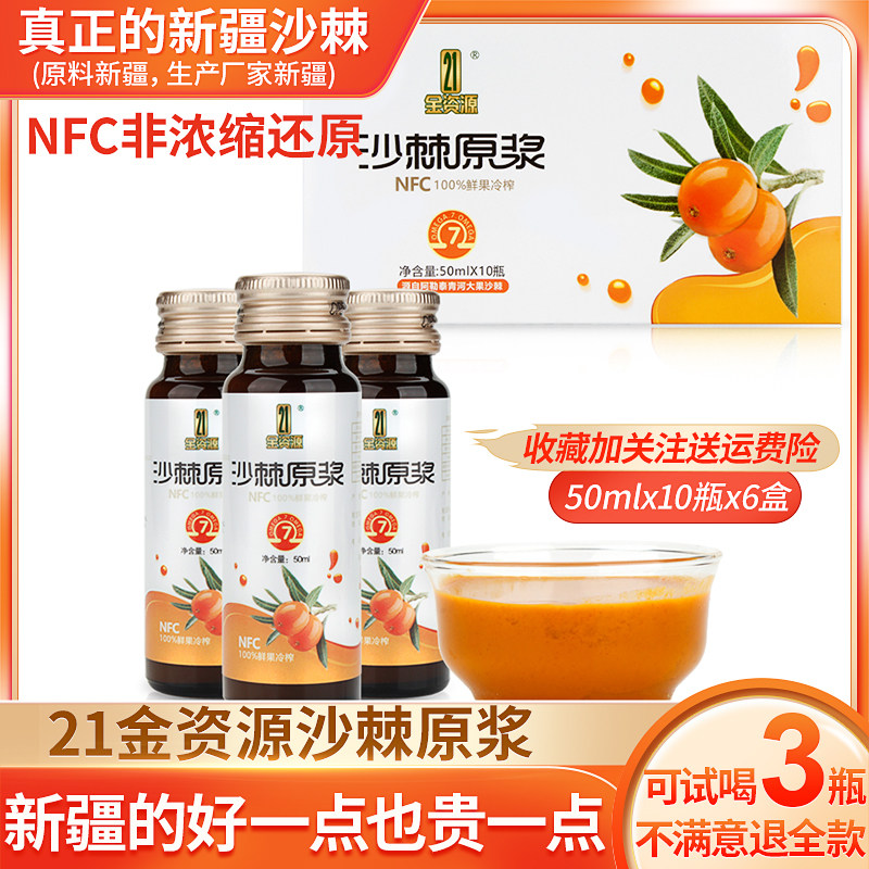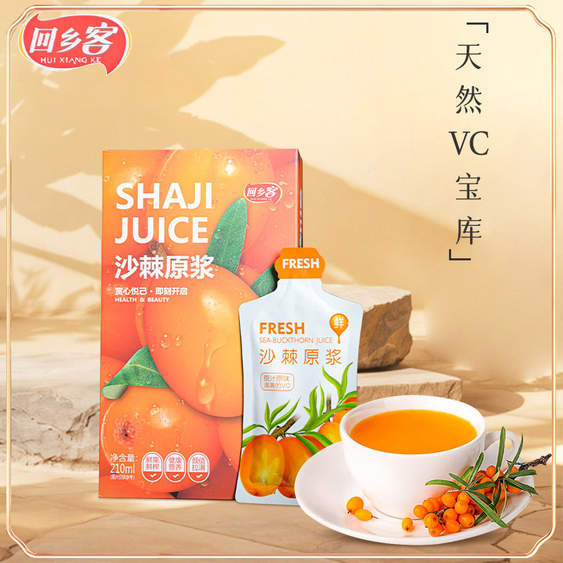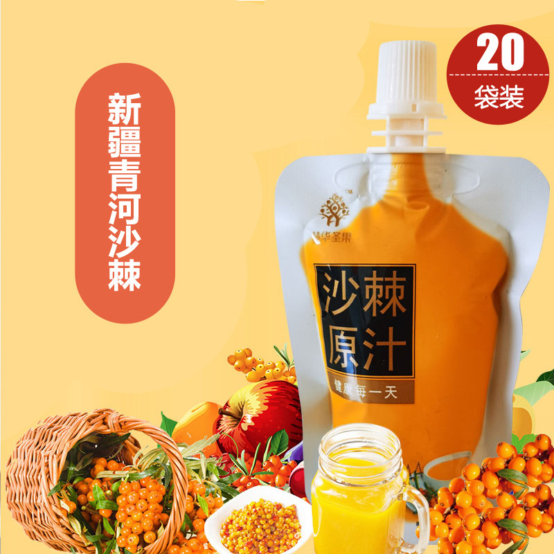 沙棘汁新疆特产纯生榨沙棘原浆果汁50ml*20袋含有沙棘油慧华圣果