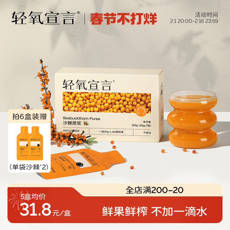 轻氧宣言沙棘原浆高VC小鲜果籽油原汁官方旗舰店正品降血压降血脂