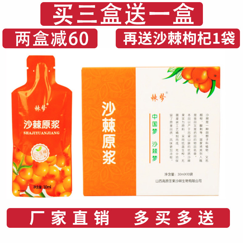 沙棘原浆果汁内蒙鲜榨vc沙棘汁果油籽油不加糖0添加官方正品原汁