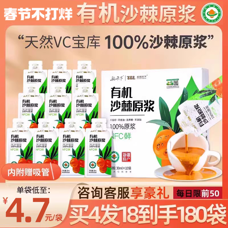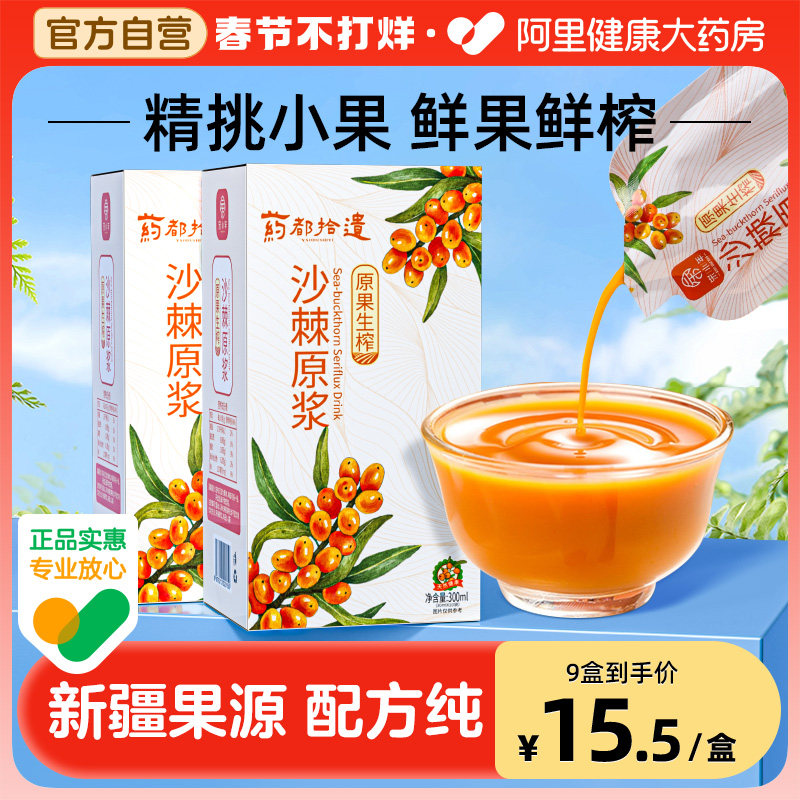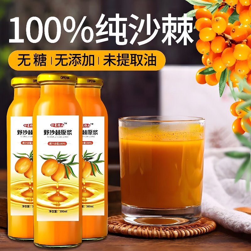 沙棘原浆官方旗舰店正品新疆果源100%原浆油果汁生榨VC小果300ml