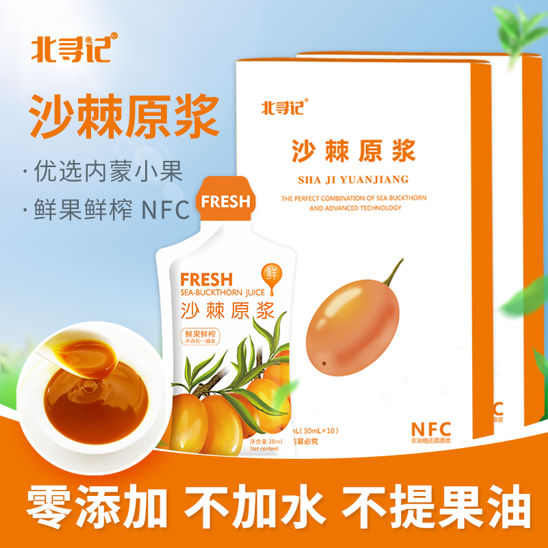 北寻记沙棘原浆内蒙小果新鲜榨维c含果籽油粉原汁液30ml*10袋盒装