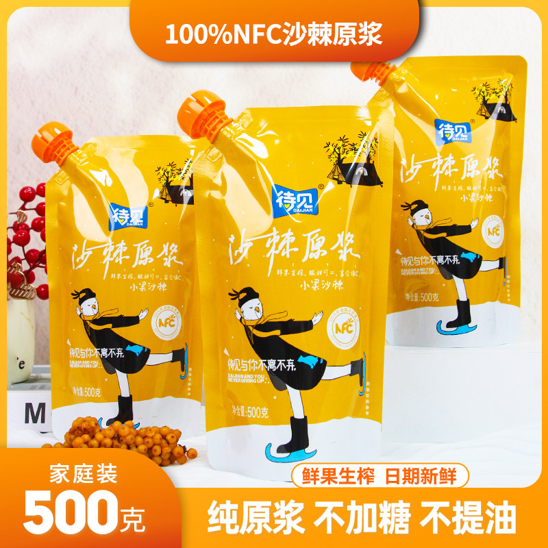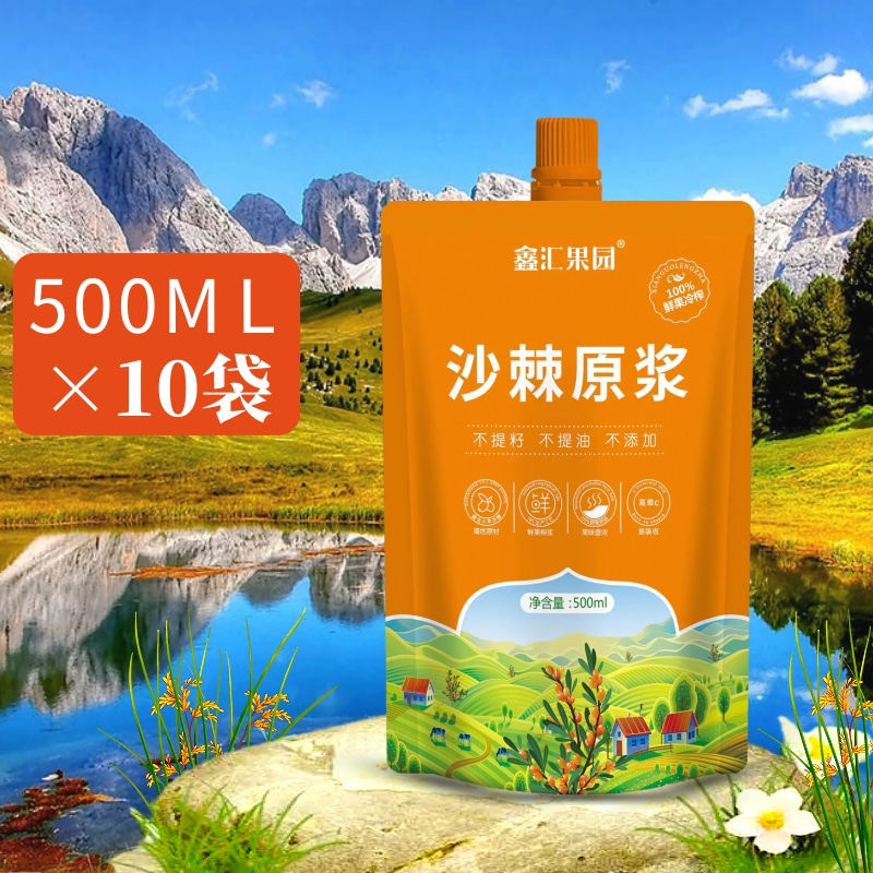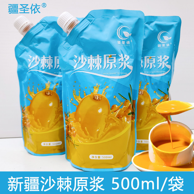 买2送1正品新疆沙棘原浆500ml袋装野生沙棘果冷榨棘密含油含籽