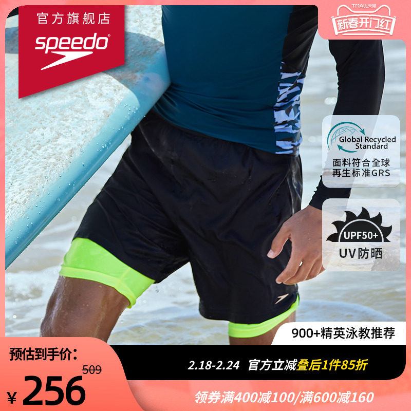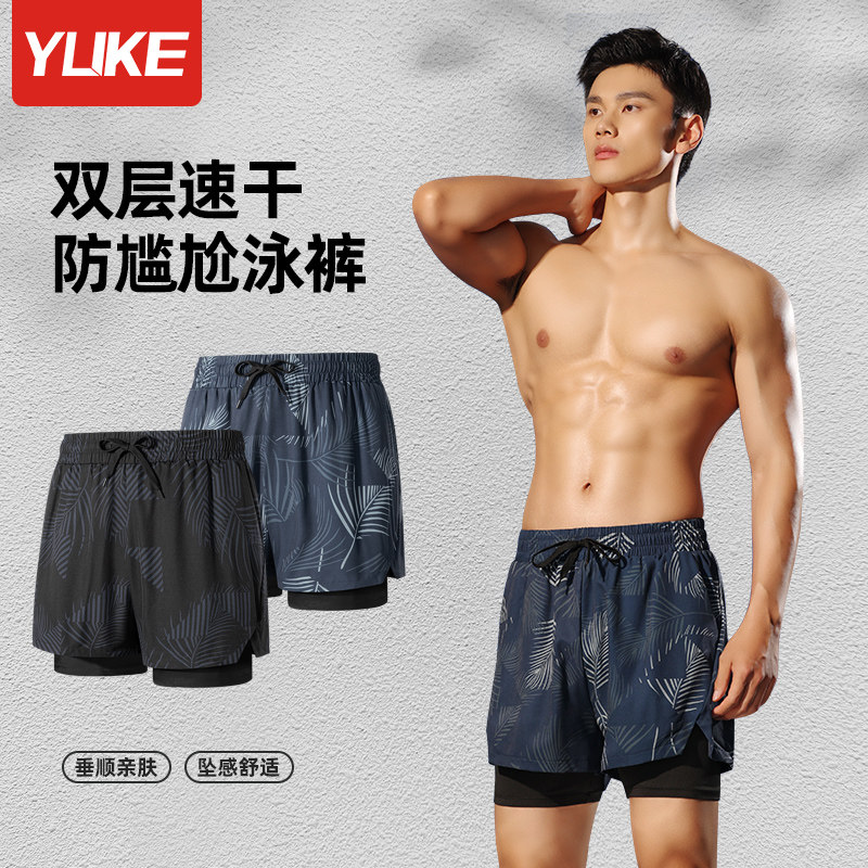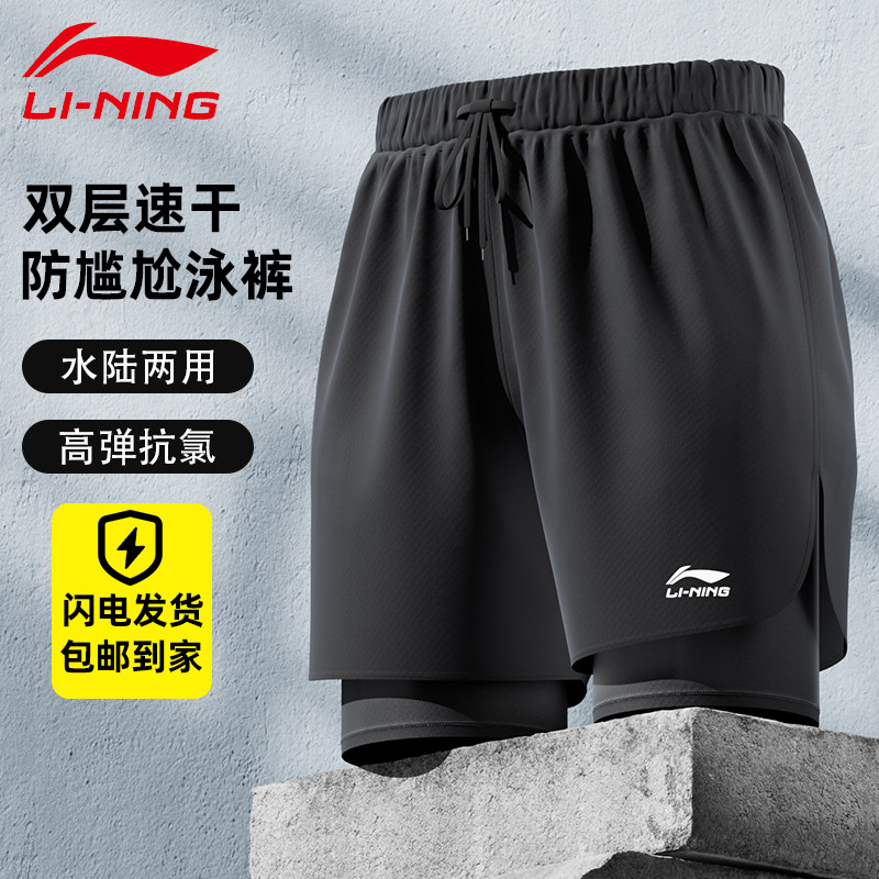 李宁泳裤男士双层防尴尬专业五分速干游泳裤套装温泉沙滩裤可下水