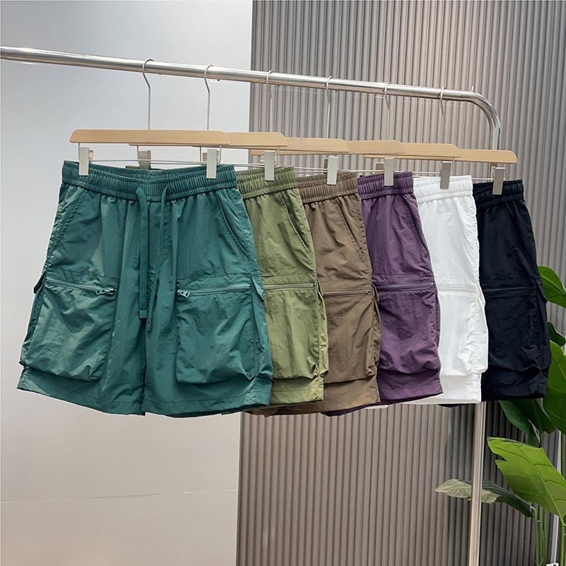 夏季薄款冰丝工装短裤男沙滩五分裤子休闲裤大口袋工装裤外穿裤子