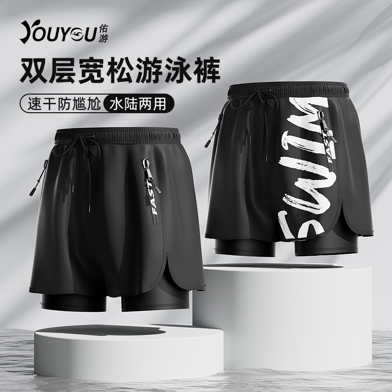 泳裤男士2023新款游泳裤专业双层速干防尴尬泳衣沙滩裤游泳套装备