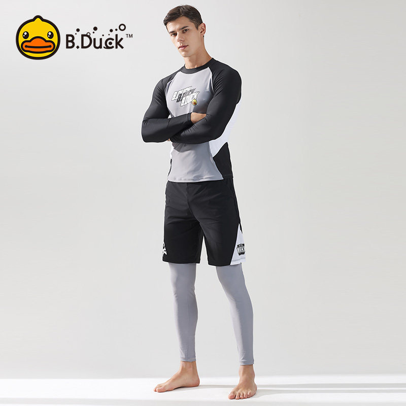 B.Duck男士泳衣长裤长袖防晒套装海边沙滩新款专业防尴尬游泳装备