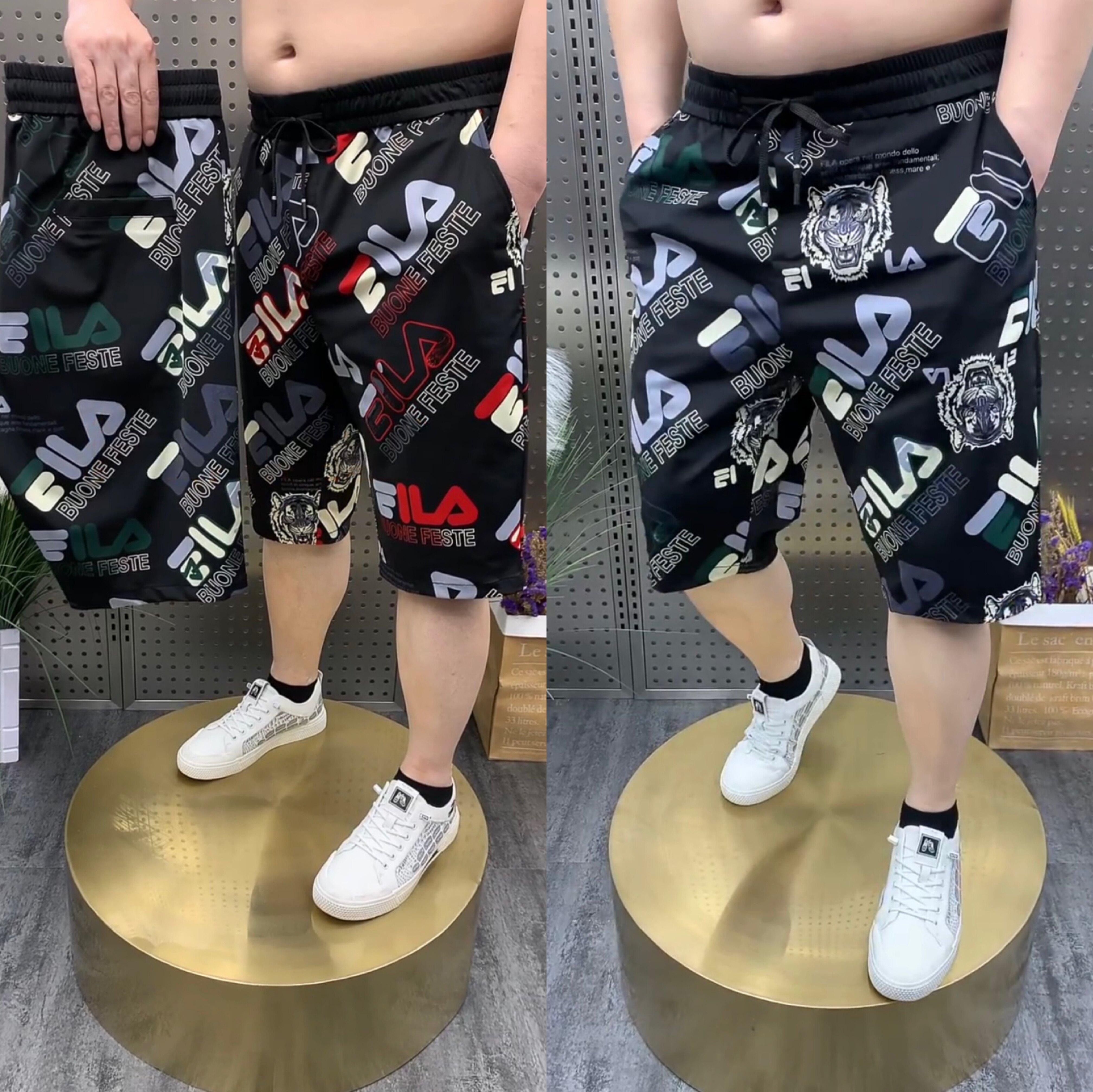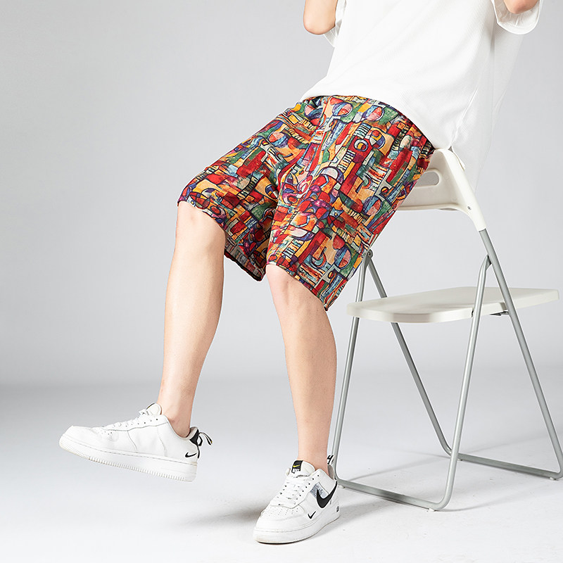 2222夏季男士薄款冰丝空调休闲短裤男宽松时尚印花沙滩裤五分裤男