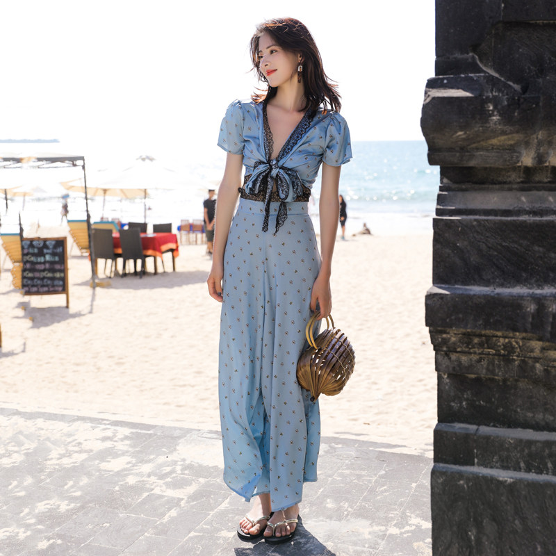 法国小众两件套装时尚洋气坠感阔腿裤海边度假沙滩裙裤休闲裤长裤