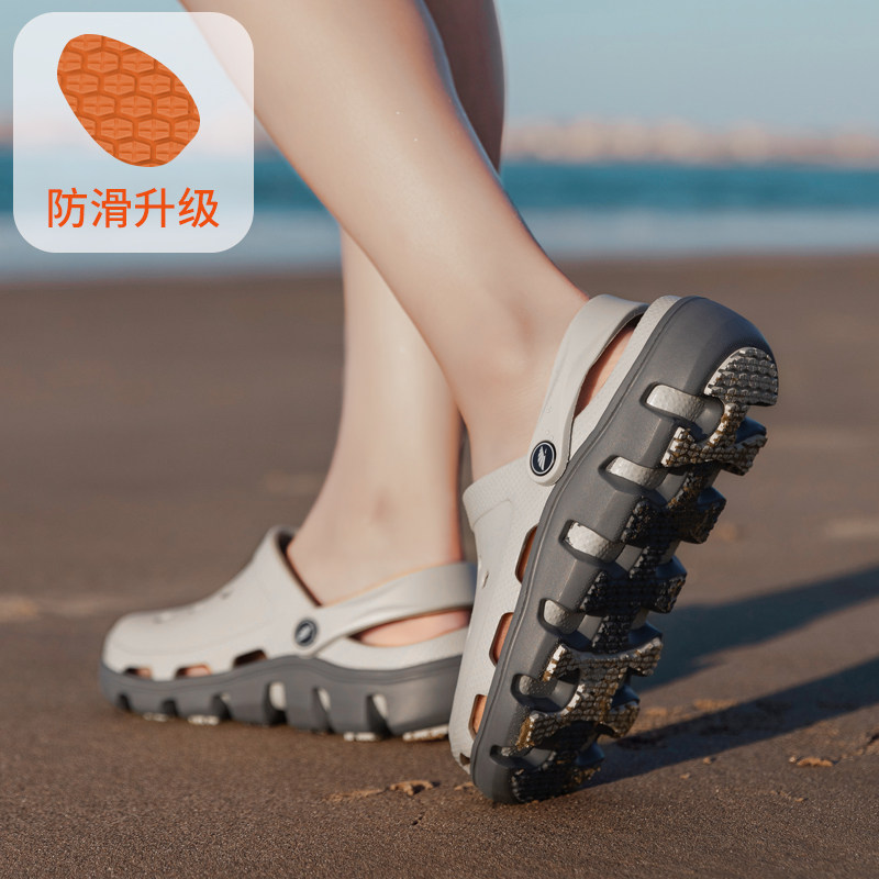 洞洞鞋男夏季外穿防滑办公室包头拖鞋男士运动厚底踩屎感沙滩凉鞋