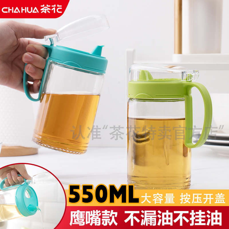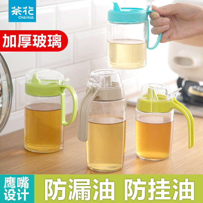 茶花油壸玻璃厨房油壶家用防漏油罐壶装油瓶酱油壶调料瓶醋瓶醋壶