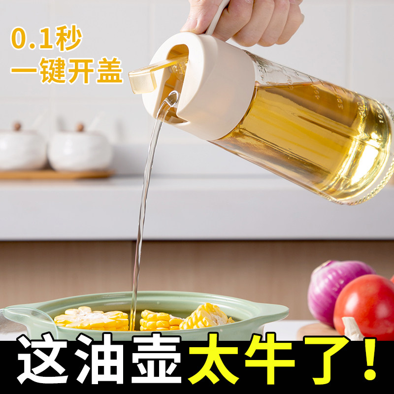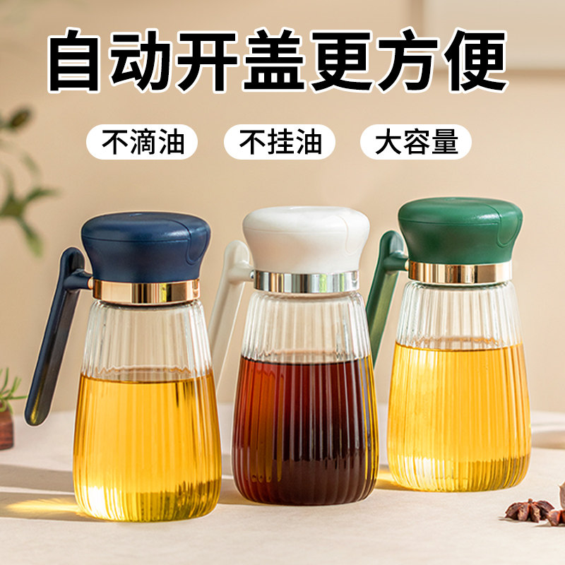 自动开合油壶大容量玻璃防漏油罐家用油瓶不挂油酱油醋壶调料瓶子