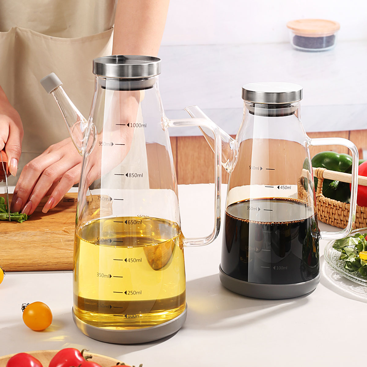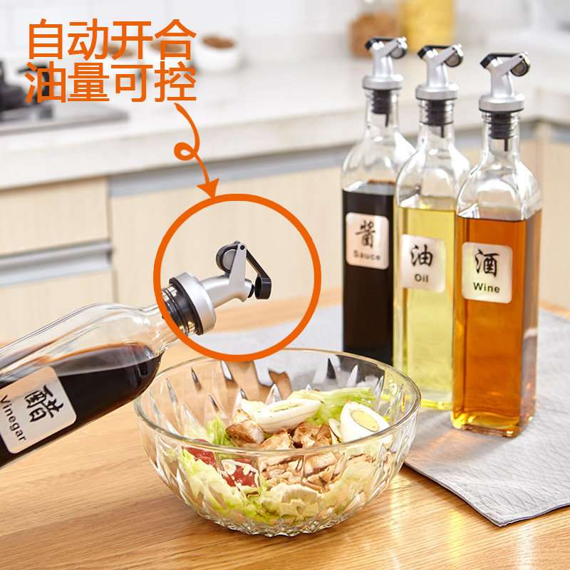 不漏油的油瓶防漏玻璃油壶罐自动开合大容量家用酱油醋调料瓶套装