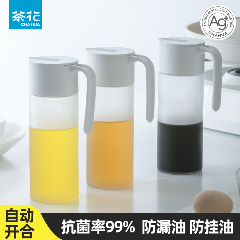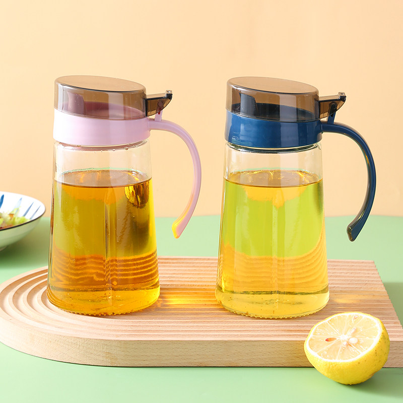 茶花玻璃油壶抗菌厨房装油罐壶家用酱油瓶醋瓶自动开合防漏倒油瓶